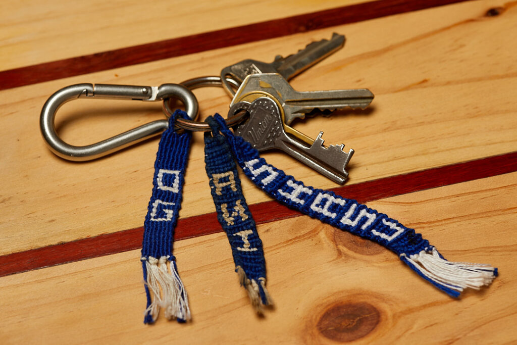 This keychain is designed as a personalized accessory, crafted using the initials or nicknames of individuals, making it both functional and meaningful.